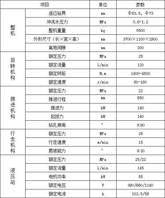 1. 履帶行走,大大提高移鉆、穩鉆的效率,顯著減輕工人的體力勞動強度;